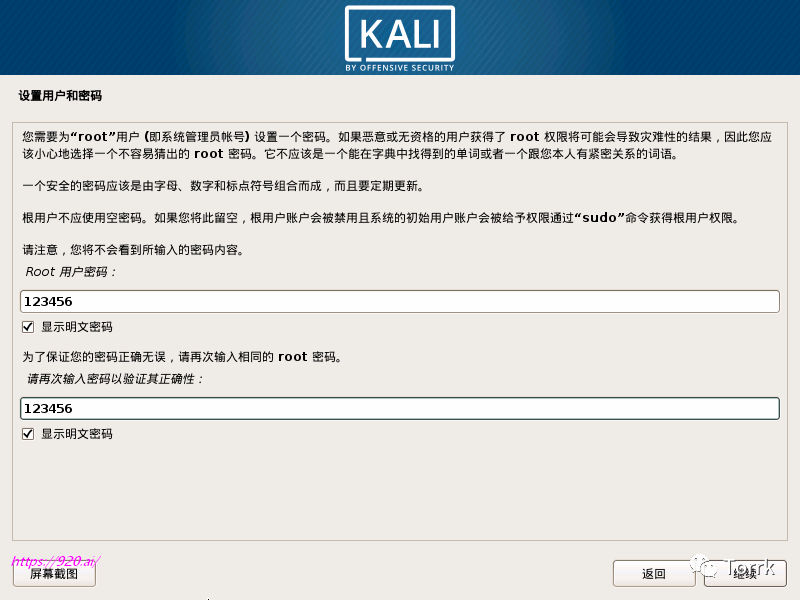 设置root密码,密码千万不能忘记,否则只能重新安装