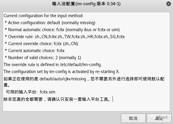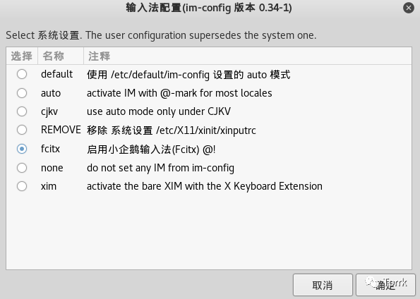 选择 fcitx - 启用小企鹅输入法