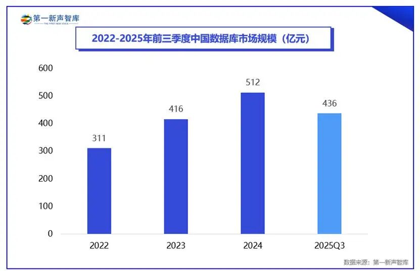 2025年前三季度数据库市场规模达436亿元,同比增长超20%