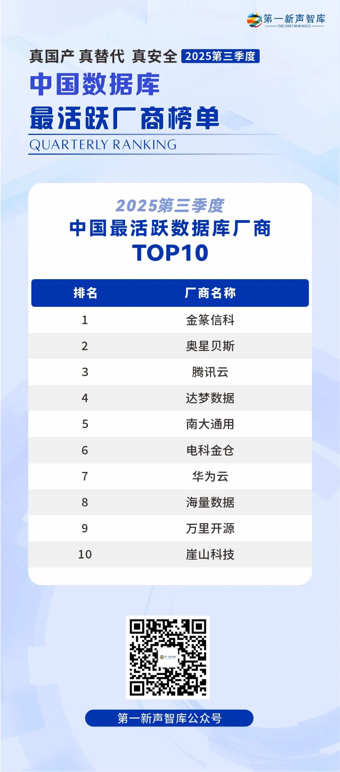 【市场报告】《2025年中国金融业数据库国产替代能力评估报告》发布丨第一新声智库