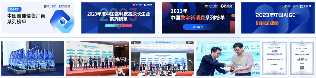 【产业榜单】2024年度中国科技行业最佳CEO及高成长企业榜单|第一新声 【产业榜单】AI创新先锋-2024年中国生成式AI创新企业系列榜单|第一新声 【产业榜单】2024年中国最佳信创厂商系列榜单|第一新声&天眼查 【产业榜单】2023年度中国高科技高成长企业系列榜单正式发布|第一新声&天眼查 【产业榜单】2023年中国AIGC创新企业系列榜单正式发布|第一新声&天眼查 【产业榜单】2023年中国数字新消费系列榜单正式发布|第一新声&天眼查 ......