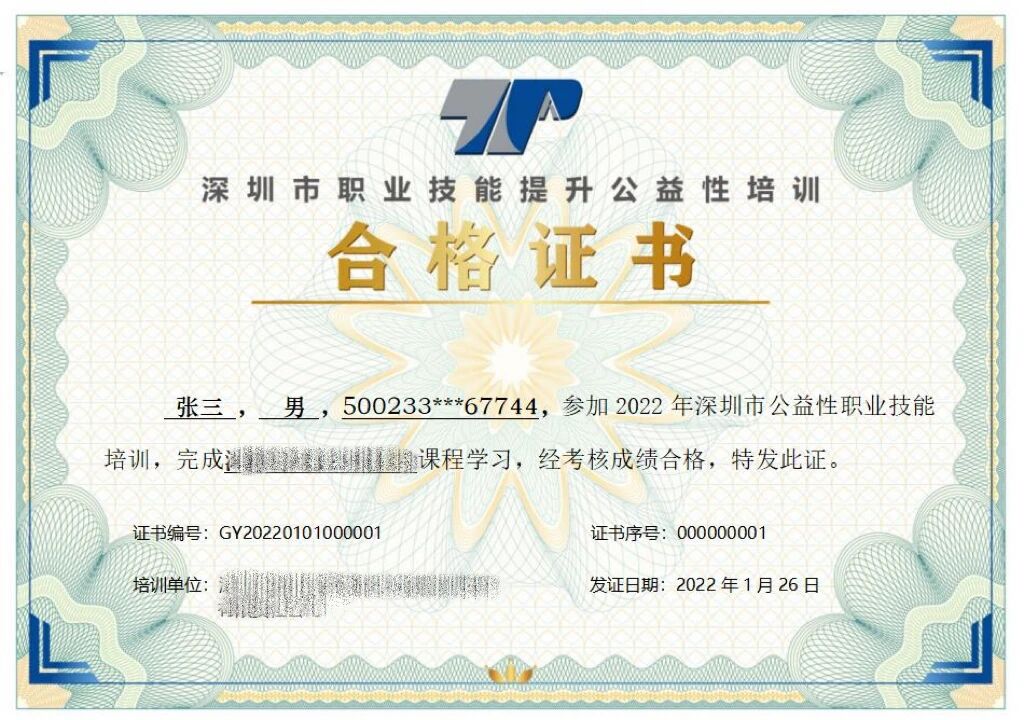 培训合格后,直接发深圳市人力资源和社会保障局认证的结业证书(含个人信息、考核结果,证书编号可查),不管是想入行数据库领域,还是现有工作想升级技能,这张证都能帮你证明实力。