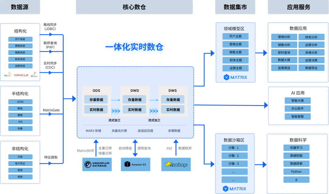 除了具备传统数据仓库的批处理能力外,YMatrix 独创的 Domino 流计算引擎,通过 SQL 即可实现数据的实时流式加工,替代 Flink、Spark 等复杂组件,简化了数据处理流程,提升了数据分析效率。