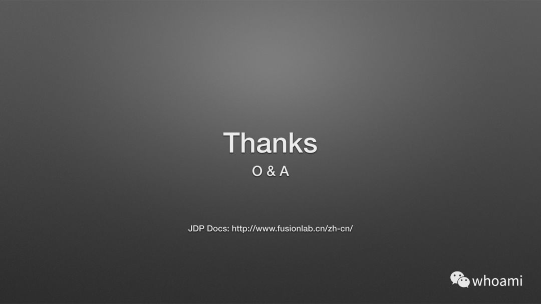 文末,Next 在 PPT 已经有所体现,相信不久的将来 Roadmap 中的功能就能问世,希望更多的人来参与社区贡献,并且把 JDP 推入更多生产环境,也希望大家来吐槽,我们慢慢会逐步完善官方文档以及搭建社区交流平台,研发节奏都在官方文档与Github的流程中体现,功能特性的设计与研发计划会更加透明方式在官方网站进行同步。
