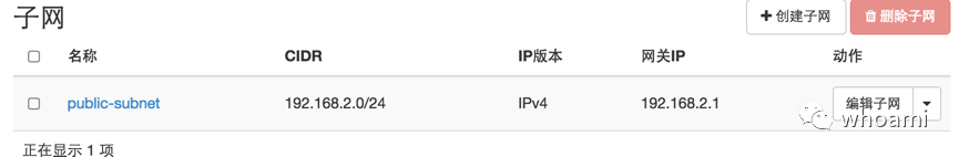 点击public网络,进去添加子网,点击下一步,最后点击创建。
