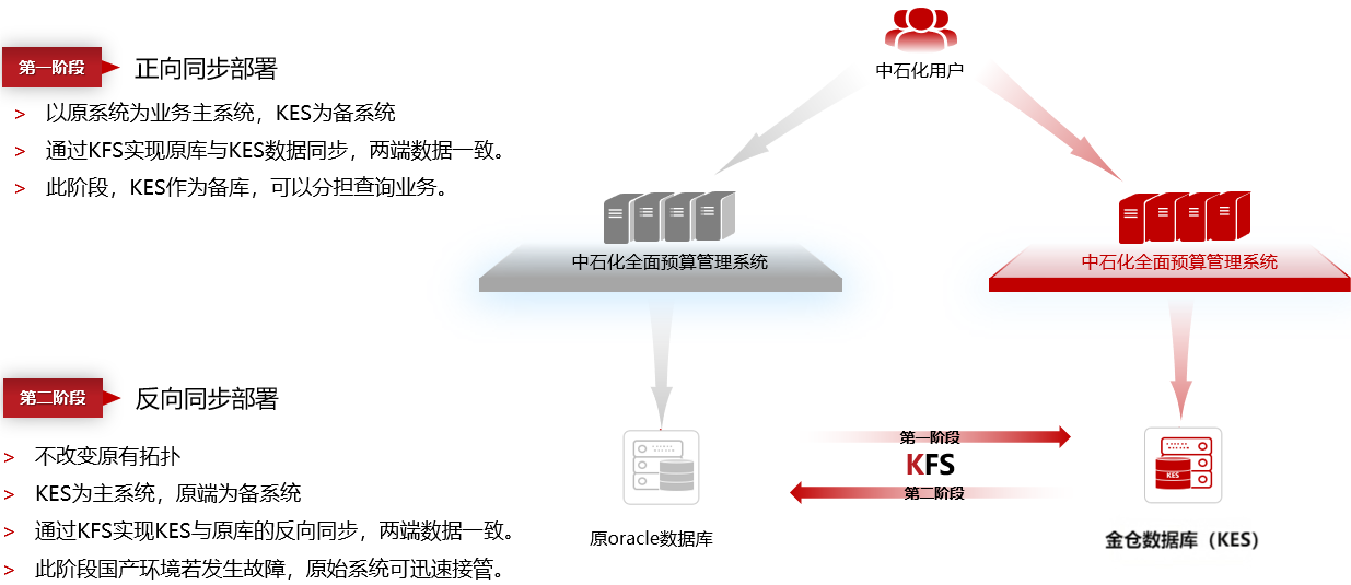 在中国石化全面预算管理系统中,电科金仓提供一主一备读写分离架构,由石化盈科集成部署,有效保障了系统的稳健运行。