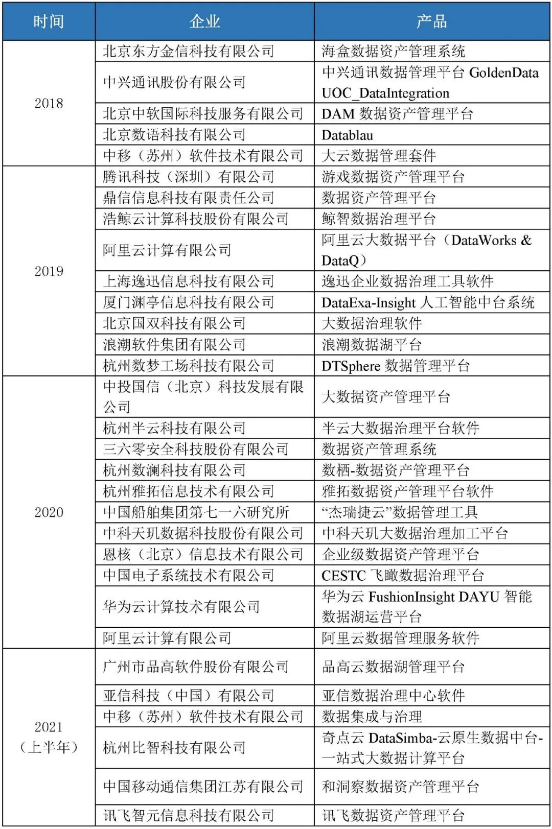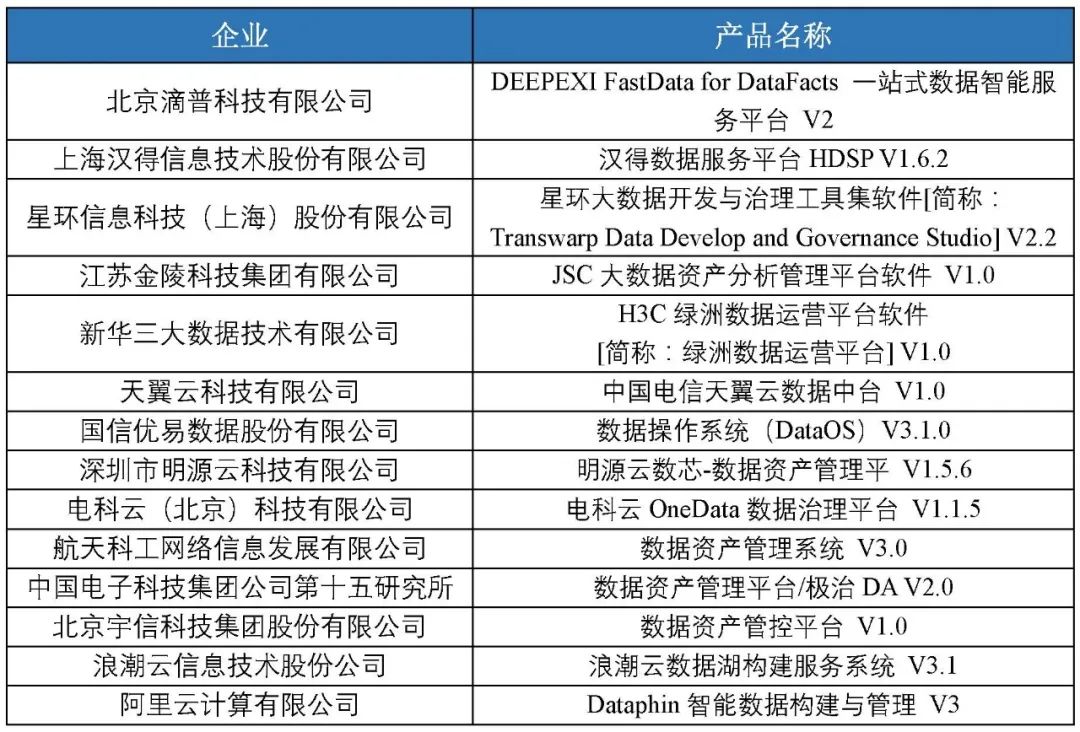 通过第十三批数据管理平台能力评测的企业与产品信息如下(排名不分先后):