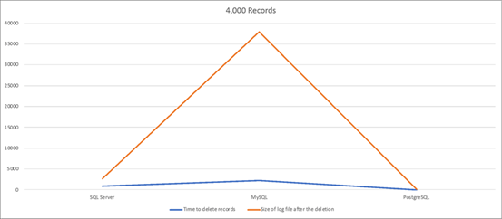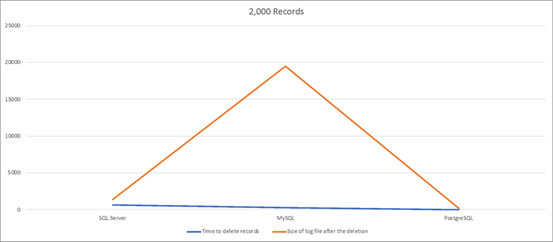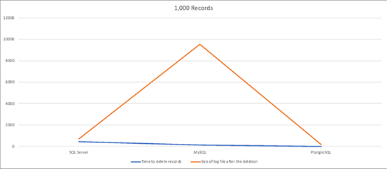 RDBMS | 删除记录的时间 | 删除后的日志大小文件 |