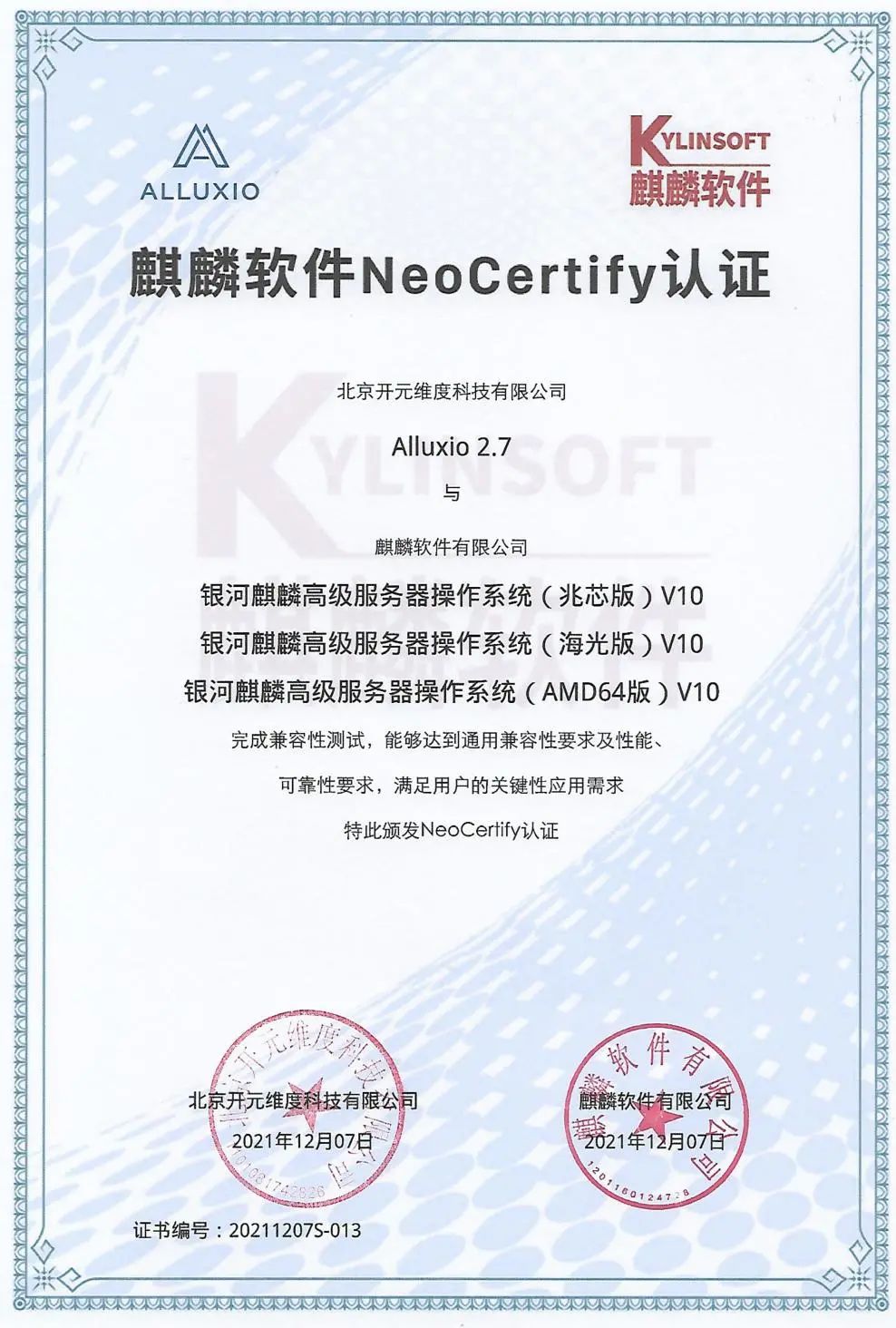 近日,Alluxio正式通过麒麟软件 NeoCertify 认证,与银河麒麟高级服务器操作系统 V10 完成兼容性互认证测试。此次认证通过,标志着 Alluxio 已经达到通用兼容性要求及性能、可靠性要求,能够满足用户的关键性应用需求,为国产操作系统上数据业务的高效运行保驾护航。