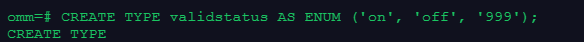 CREATE TYPE validstatus AS ENUM ('on', 'off', '999');
