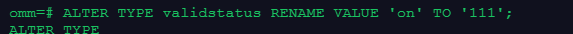 ALTER TYPE validstatus RENAME VALUE 'on' TO '111';