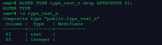 ALTER TYPE type_test_n drop ATTRIBUTE f1;