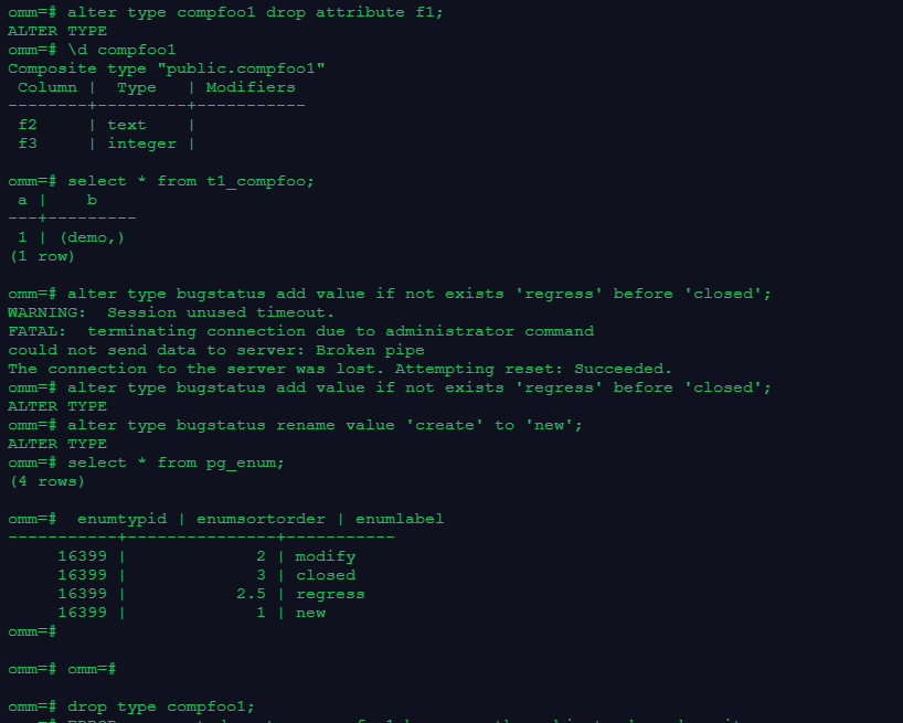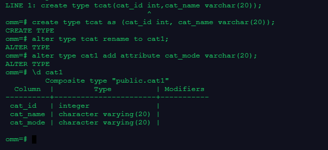 ALTER TYPE compfoo RENAME TO compfoo1;修改数据类型名