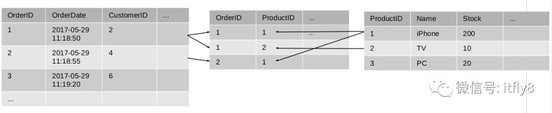 。同样地,我们没法简单地将所有购买的产品保存在订单表里,