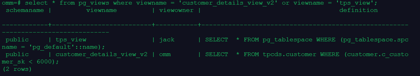 select * from pg_views where viewname = 'customer_details_view_v2' or viewname = 'tps_view';