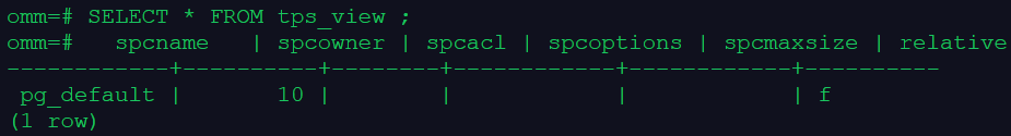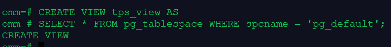 CREATE VIEW tps_view AS SELECT * FROM pg_tablespace WHERE spcname = 'pg_default';