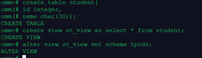 2.创建一个用户表student,并在用户表上创建视图,修改视图schema;