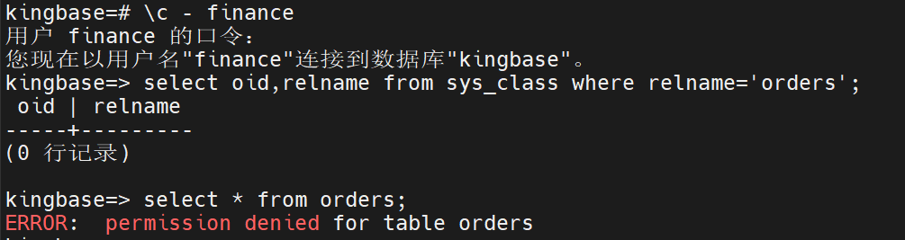 您现在以用户名"finance"连接到数据库"kingbase"。