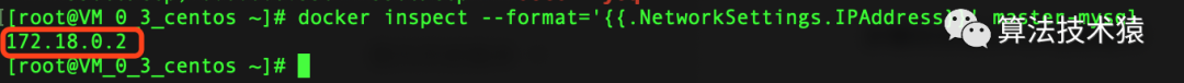 $ docker inspect --format='{{.NetworkSettings.IPAddress}}' master-mysql