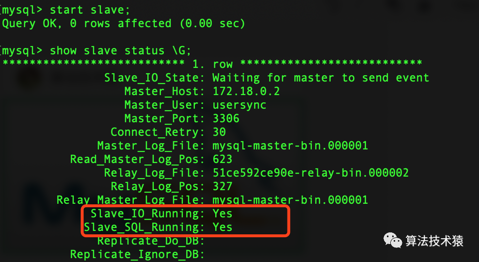 # 在查看slave的Slave_IO_Running和Slave_SQL_Running状态,如果都是yes,则表示链接成功