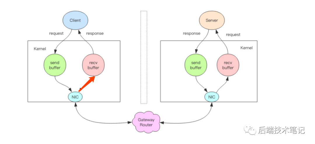 g、客户端操作系统内核将网卡的数据放到内核为套接字分配的接收缓冲 recv buffer。