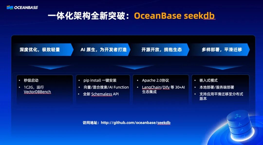 这三个方向,构成了 AI 时代数据库演进的核心命题。OceanBase 的回应,就是 seekdb。