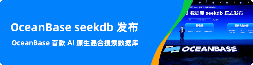在 2025 OceanBase 年度发布会上,我们正式发布并开源了 OceanBase 首款 AI 原生混合搜索数据库 OceanBase seekdb(简称 seekdb)。