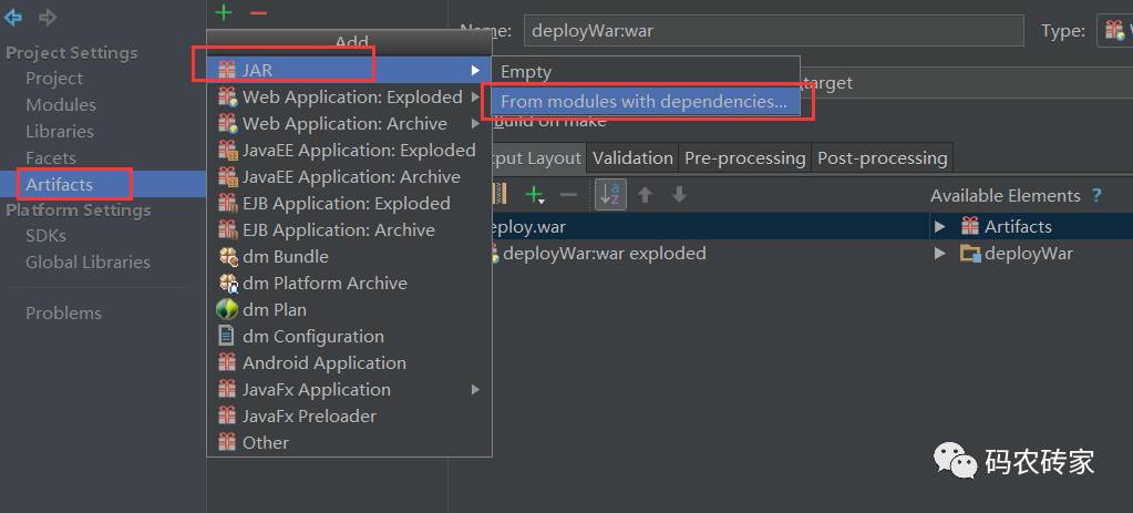 (2)为项目配置程序的入口:在idea中添加一个jar,并设置程序的入口
