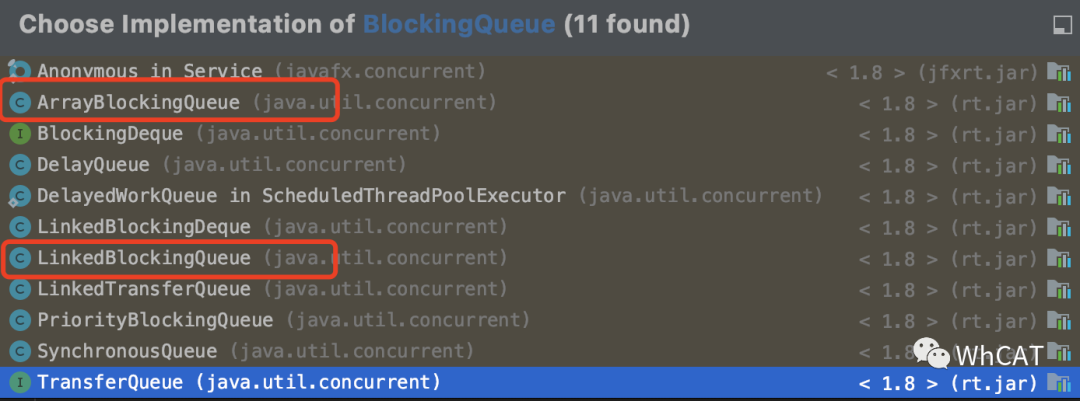 所以,我们分析出了ArrayBlockQueue是有界的。对其他队列的分析方式和此一样,不妨你自己分析一下。
