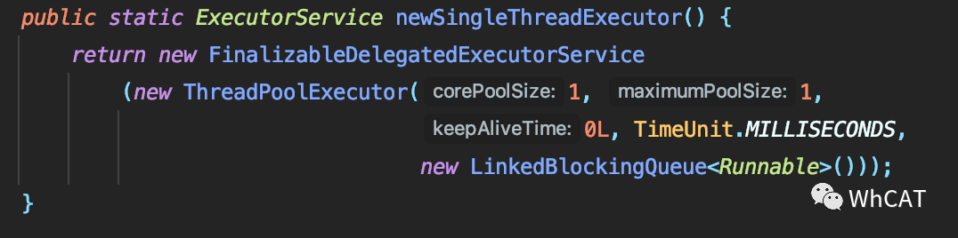 核心线程数、最大线程数为1,使用单个线程运行。