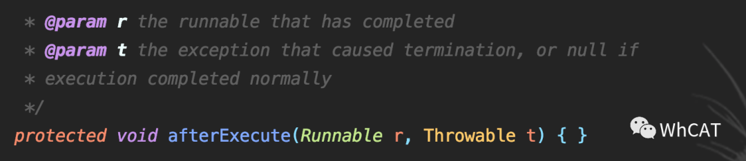 5) task.run完成后,我们调用afterExecute,这也可能引发异常,这也将导致线程死亡。根据JLS Sec 14.20,此异常是即使task.run抛出也会生效的异常。