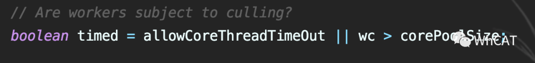 核心线程允许超时标志位为true或当前线程数超出了核心线程数,timed标志置位: