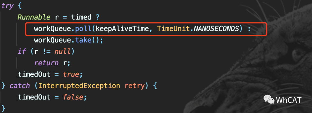 这一部分是getTask的核心代码,还记得前面说过的keepAliveTime吗?其实keepAliveTime的逻辑就是在这里实现的!