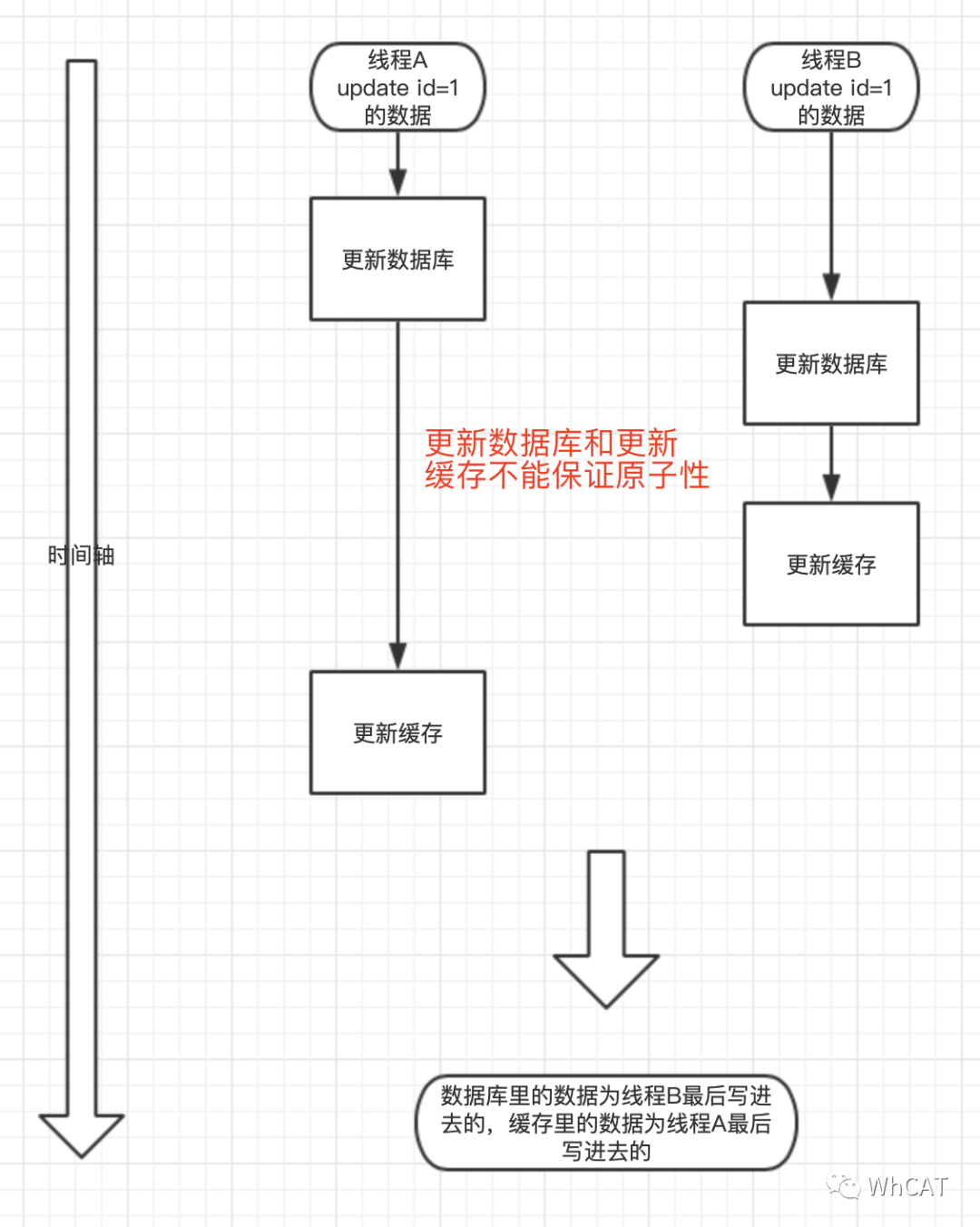 针对同一时刻对同一条记录的更新、读取,小概率会出现数据不一致的情况。假设线程A更新某条数据,线程B读取同一条数据,则下面的情况是有可能出现的,但出现的概率很小: