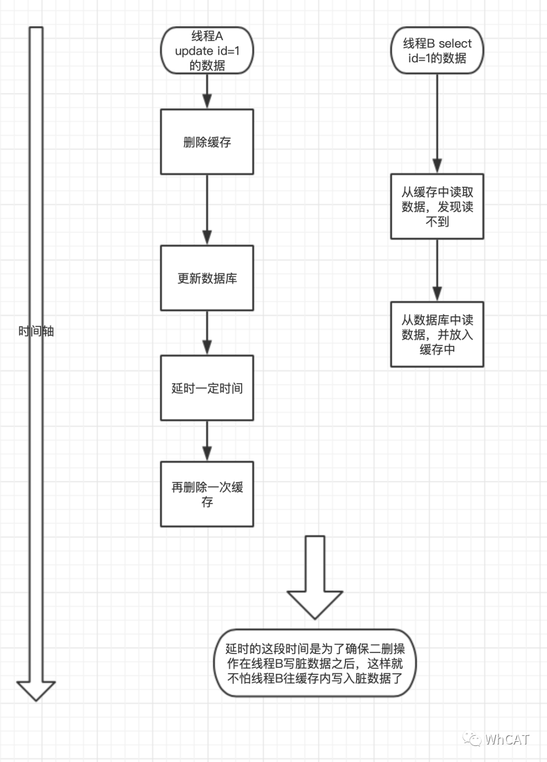 当然了,要想解决小概率不一致问题,也不是不可以。答案同样是使用延迟删除。关于延迟删除,在上面解释过了,下面就只贴个图吧!