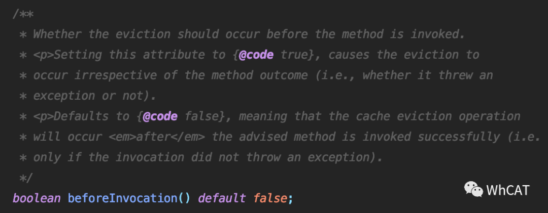 将beforeInvocation设置为true,则先删缓存再操作数据库,将beforeInvocation设置为false则先操作数据库,成功后,再删缓存。