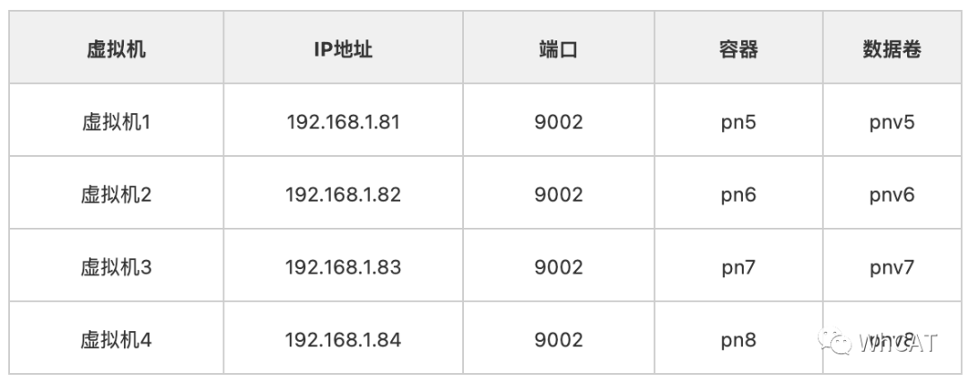 <dataHost name="pxc2" maxCon="1000" minCon="10" balance="0"writeType="1" dbType="mysql" dbDriver="native" switchType="1" slaveThreshold="100"><heartbeat>select user()</heartbeat><!-- can have multi write hosts --><writeHost host="p2w1" url="192.168.1.81:9002" user="root"password="abc123456"/><writeHost host="p2w2" url="192.168.1.82:9002" user="root"password="abc123456"/><writeHost host="p2w3" url="192.168.1.83:9002" user="root"password="abc123456"/><writeHost host="p2w4" url="192.168.1.84:9002" user="root"password="abc123456"/></dataHost>