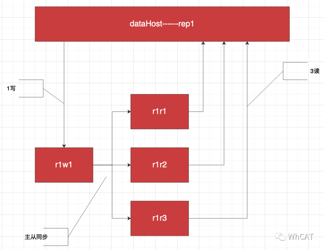 <dataHost name="rep1" maxCon="1000" minCon="10" balance="3"writeType="1" dbType="mysql" dbDriver="native" switchType="1" slaveThreshold="100"><heartbeat>select user()</heartbeat><!-- can have multi write hosts --><writeHost host="r1w1" url="192.168.1.81:9003" user="root"password="abc123456"><readHost host="r1r1" url="192.168.1.82:9003" user="root"password="abc123456"/><readHost host="r1r2" url="192.168.1.83:9003" user="root"password="abc123456"/><readHost host="r1r3" url="192.168.1.84:9003" user="root"password="abc123456"/></writeHost></dataHost>