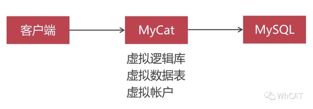 Mycat可以把多个集群统一管理起来,Mycat在运行时会把自己虚拟成一个数据库节点,包括虚拟账户虚拟逻辑库、虚拟逻辑表。用户在使用Mycat中间件时如同使用单节点数据库一般简单。