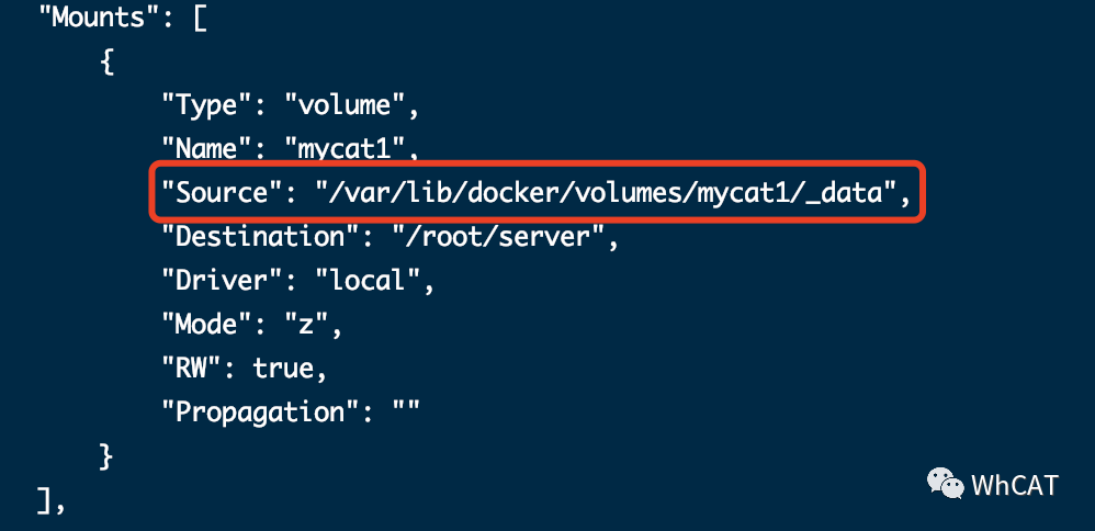 docker inspect mycat1或docker volume inspect mycat1