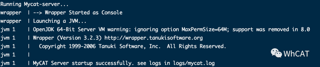 可以看到Mycat成功运行起来了