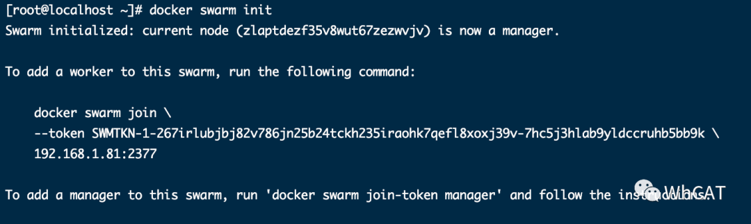 docker swarm join \--token SWMTKN-1-267irlubjbj82v786jn25b24tckh235iraohk7qefl8xoxj39v-7hc5j3hlab9yldccruhb5bb9k \192.168.1.81:2377