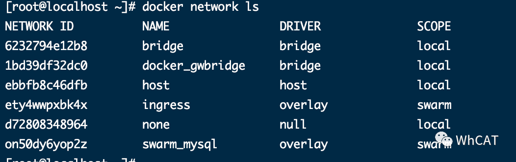在这里需要创建一个虚拟网络swarm_mysql,后面创建的PXC集群和Replication集群都需要加入到此虚拟网络中来。