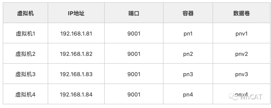 在本例中我将用4台主机搭建Docker集群,数据库集群用Docker进行部署。因为我们要利用Docker环境搭建数据库集群,如果把所有的MySQL节点都部署在同一个Docker虚拟机之内,要是宿主机宕机,那么Docker里面所有的容器都不能使用了,数据库集群就彻底瘫痪了。所以我们应该采用分布式部署的方案,把MySQL节点部署在不同的Docker虚拟机之上。