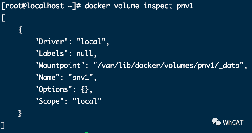 使用docker volume inspect pnv1命令查看pn1容器的数据详情: