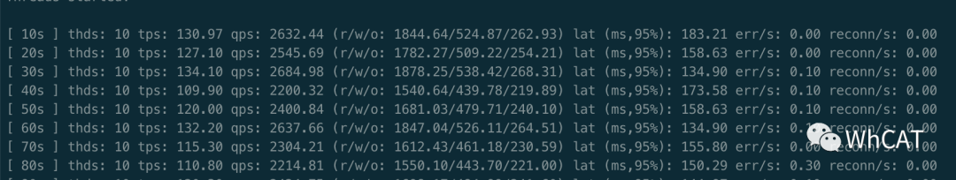 ignored errors:共有29个错误被忽略,平均每秒0.1个。在本例中,客户端开了10个线程。可以在错误数没有明显提告的情况下,尝试加大并发线程数数,这样测出来的TPS和QPS理论上会更高,也能更好的反映数据库并发处理能力。