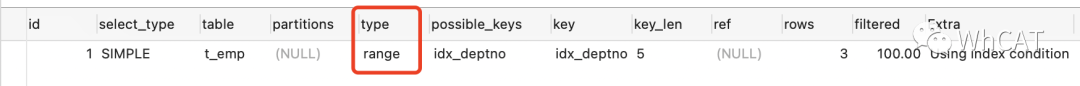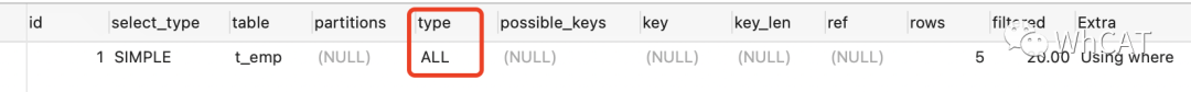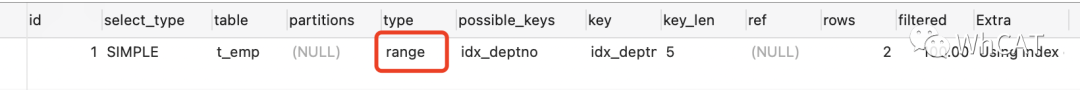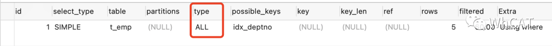 EXPLAIN SELECT empno,ename,salFROM t_empWHERE deptno > 0;