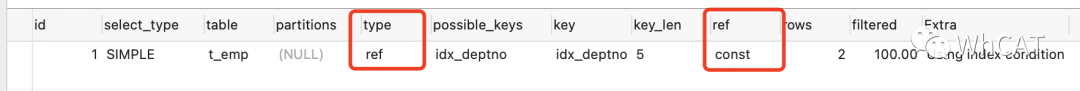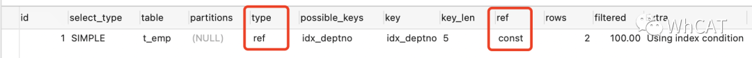 EXPLAIN SELECT empno,ename,salFROM t_empWHERE deptno IS NOT NULL;