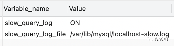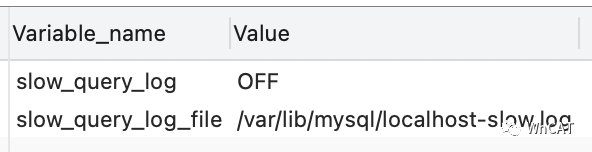 可以看到当前是没有打开慢查询日志的。开启的方式也很简单,在my.cnf中添加/修改以下两行代码即可:
