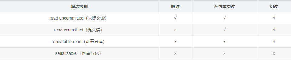 MySQL中隔离级别分为4种,提未交读、读已提交、可重复读、串行化。同时MySQL默认隔离级别为可重复读。